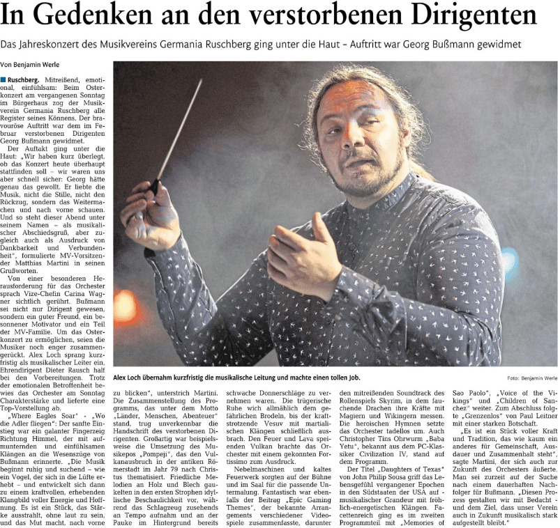Jedes Jahr an Ostersonntag zeigt sich, wofür wir ab Herbst proben. Das große Konzert im immer ausverkauften Ruschberger Bürgerhaus steht immer unter einem anderen Motto. Die Musikauswahl wird thematisch angepasst und erstaunt und verzaubert die Zuhörer jedes Jahr aufs Neue!